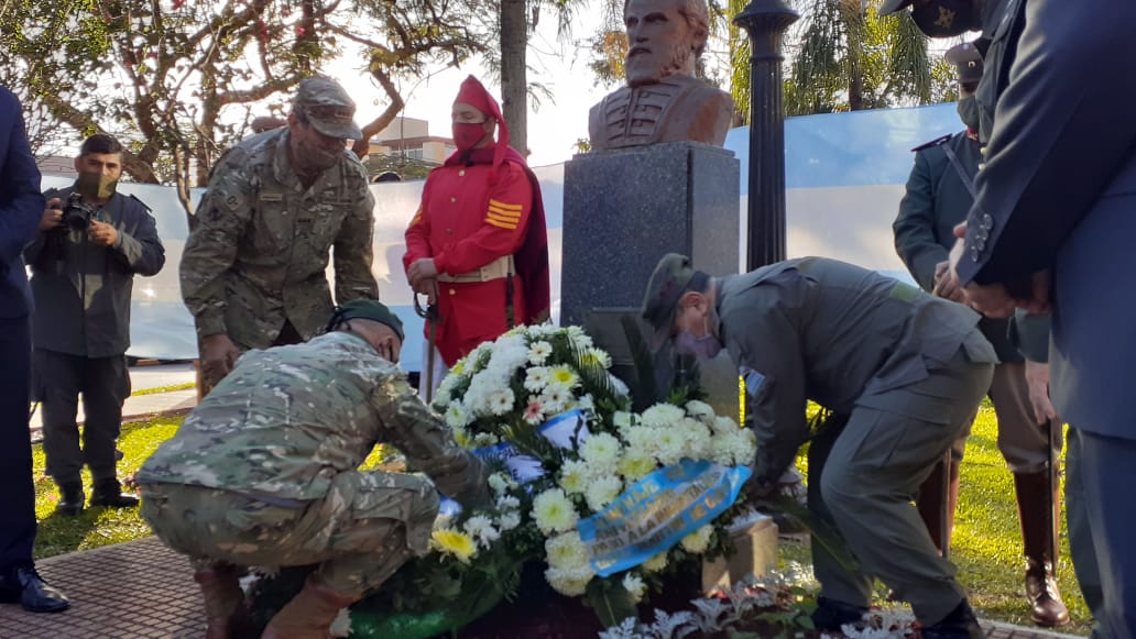 Realizaron una ofrenda floral en Posadas por la conmemoración del 200 Aniversario del Paso a la Inmortalidad del General Güemes