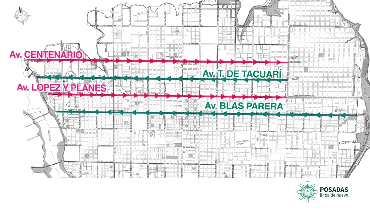 El equipo técnico municipal estudió la posibilidad de rediseñar la circulación en las cuatro avenidas en sentido único para el ingreso y egreso al casco céntrico, del sector de la zona Oeste de la ciudad de Posadas. En los últimos años, este sector viene demostrando un gran desarrollo en el crecimiento demográfico. Por lo cual, se optimizan las condiciones de conectividad de los barrios localizados en Villa Cabello e Itaembé Guazú de manera segura y dinámica.
