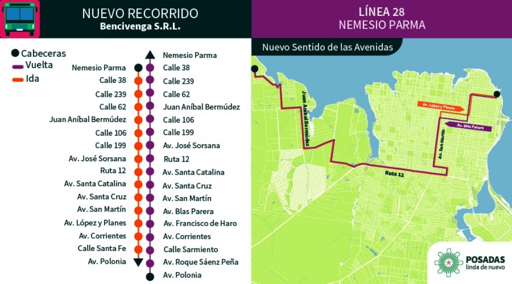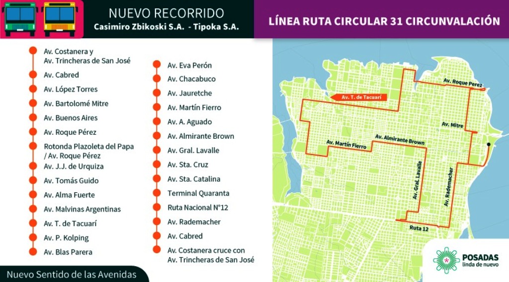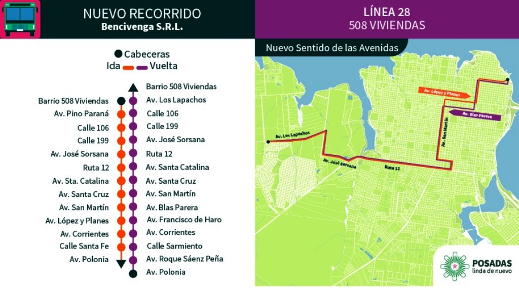 Con la habilitación del Plan de Ordenamiento y Jerarquización Vial, la Municipalidad de Posadas habilitó una serie de opciones para conocer los recorridos de las líneas del transporte público de pasajeros.