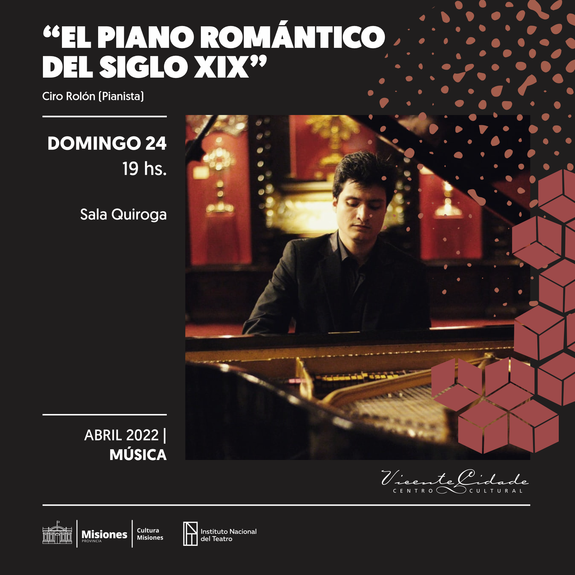 El segundo encuentro será con la llegada del joven concertista Ciro Rolon, que luego de varios años se vuelve a encontrar con el público de esta provincia. Para esta ocasión, el domingo 24, a las 19:00 horas, presenta “El Piano Romántico del siglo XIX”; ejecutará obras de Frédéric Chopin y Franz Liszt.