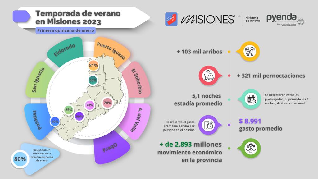 El Ministerio de Turismo de Misiones precisó que en los primeros 15 días de este año hubo un movimiento económico de $2.893 millones con una ocupación hotelera que promedió el 80%.