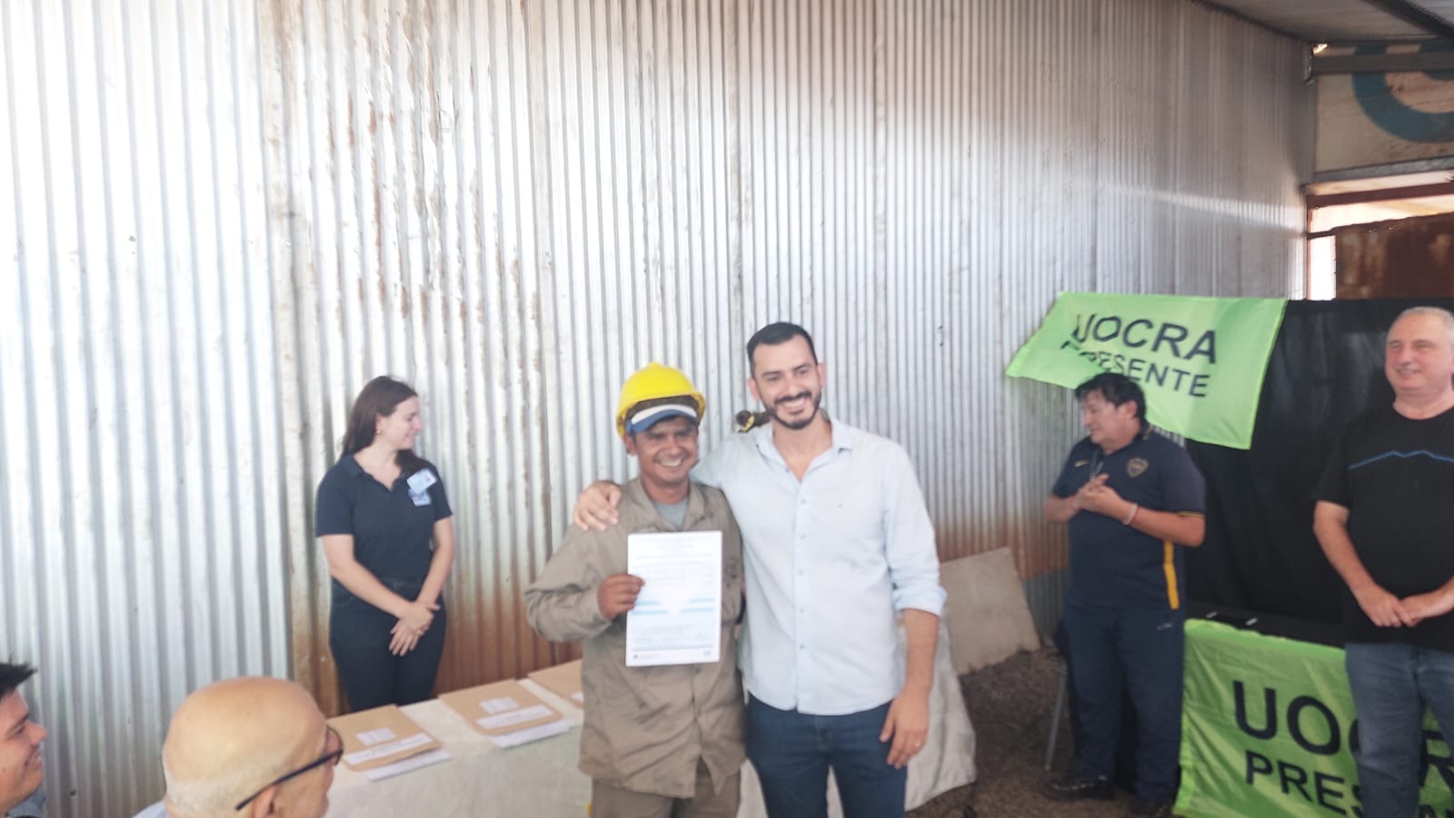 Hugo Passalacqua y Lalo Stelatto junto a directivos de la UOCRA entregaron certificados de capacitación a obreros y obreras de Posadas