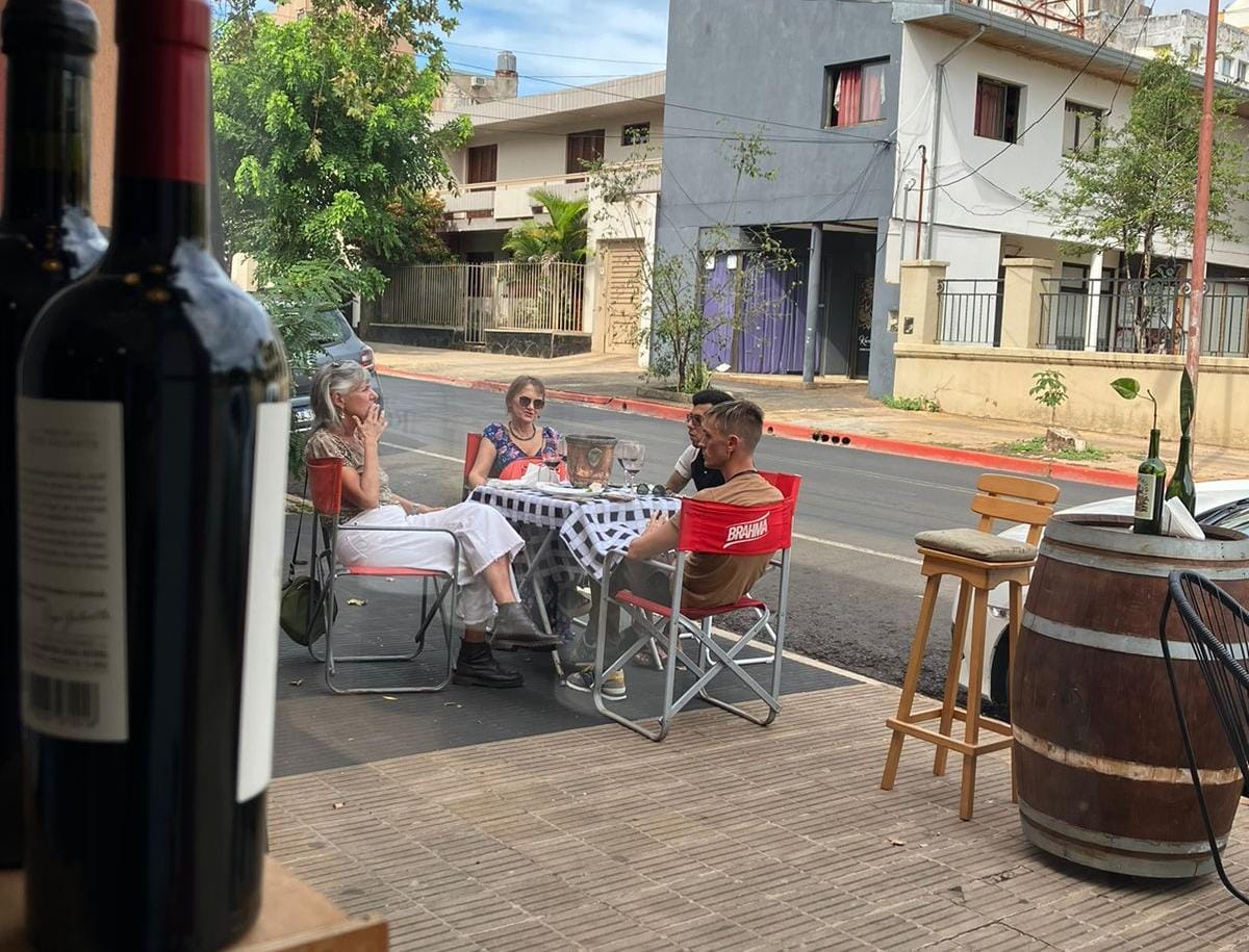 En un encuentro bien popular, en la vereda frente al local de una vinoteca en el microcentro posadeño, se vendieron empanadas y vino para celebrar el Día del Trabajador este 1° de mayo.