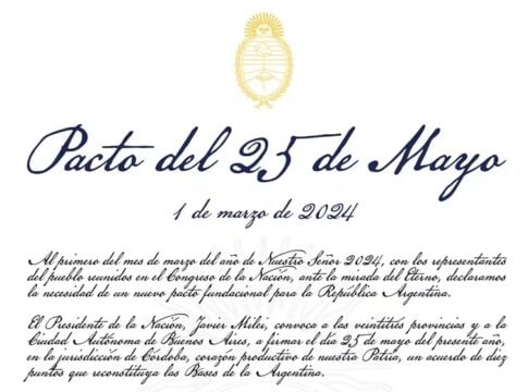 En el marco de su discurso de este viernes durante la apertura de sesiones ordinarias en el Congreso, Javier Milei convocó a los 24 gobernadores del país a firmar el denominado “Pacto del 25 de Mayo”, un nuevo documento fundacional para la República Argentina en el que se establecerán los 10 principios de un nuevo orden político y económico.