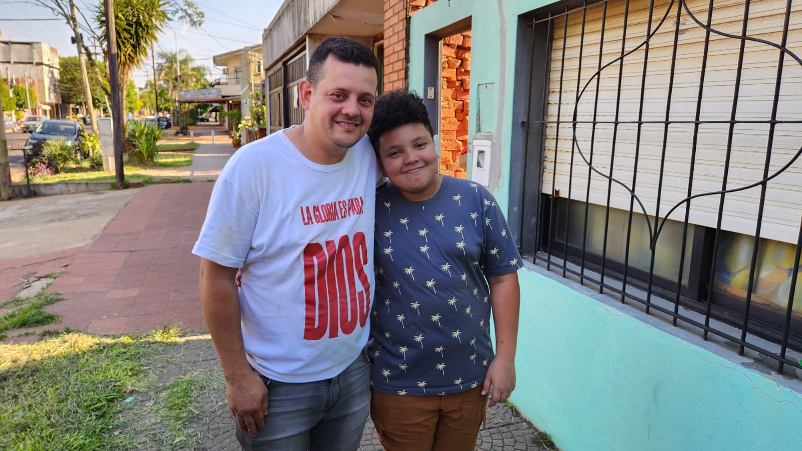 Emiliano y su papá después de la operación