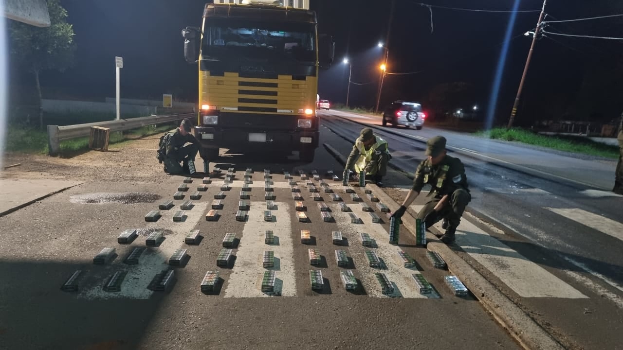Luego de constatar la documentación, los uniformados controlaron el camión y su semirremolque, sobre el cual se encontraba asegurado un contenedor. Las requisas efectuadas sobre la parte inferior del acoplado evidenciaron un agujero en una placa de madera que servía de apoyo al contenedor, a través del cual se observaron paquetes de cigarrillo.