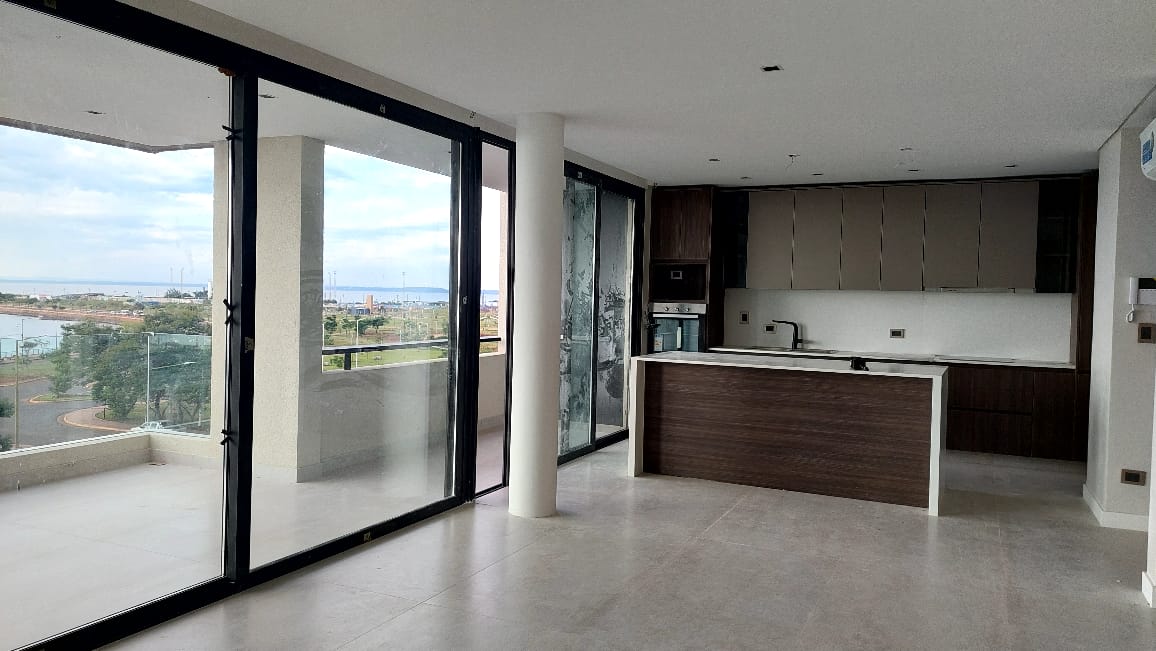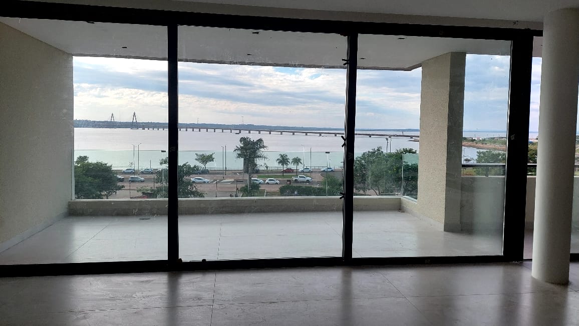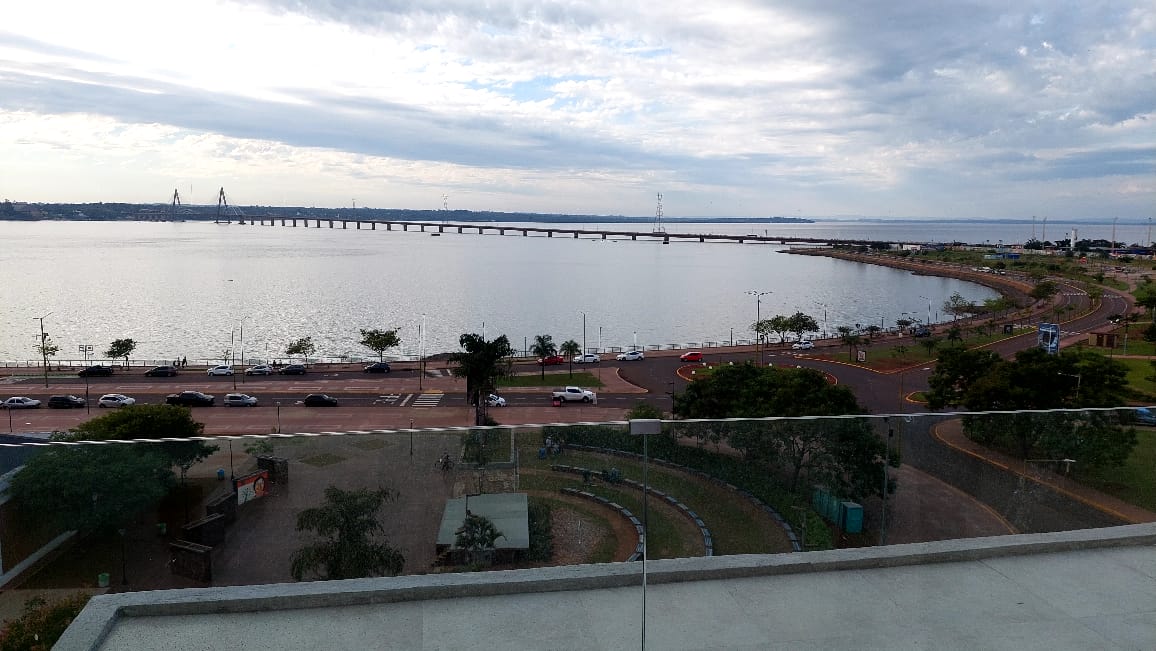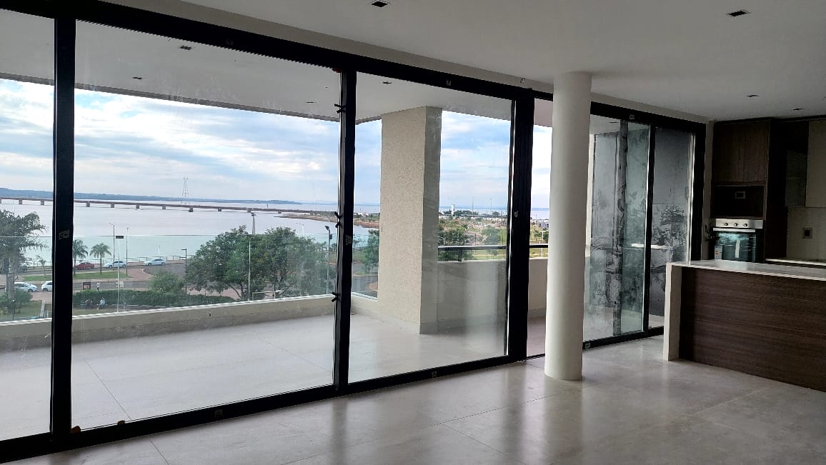 Áreas Comunes: amplio living comedor con vistas al río y al puente internacional San Roque González de Santa Cruz.