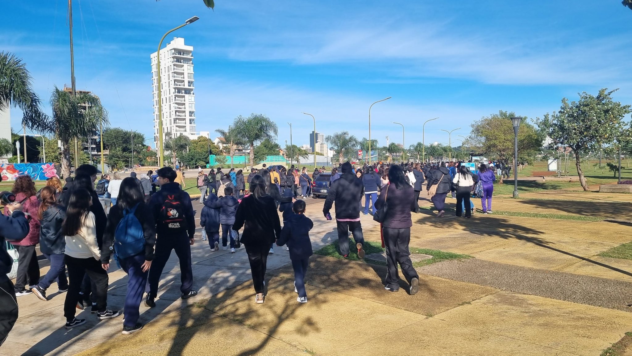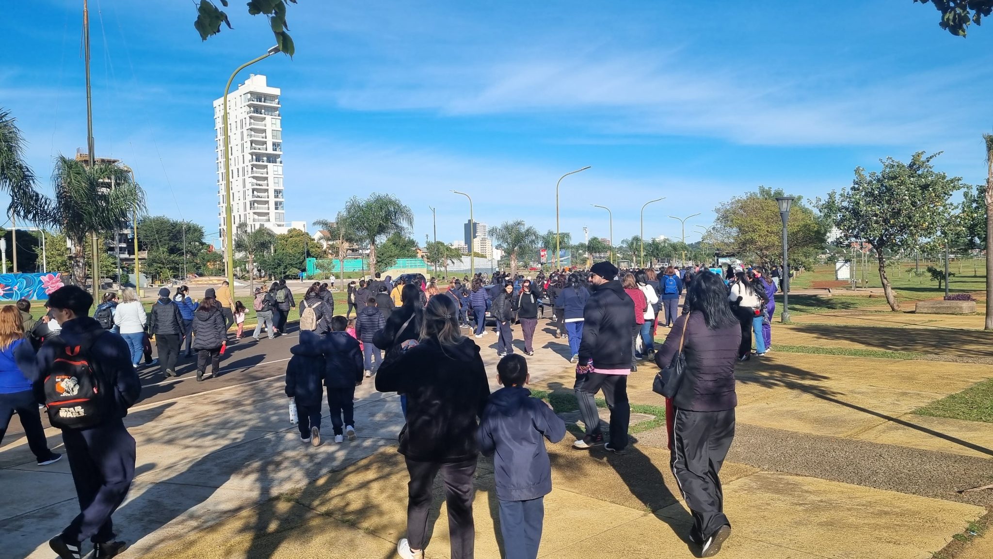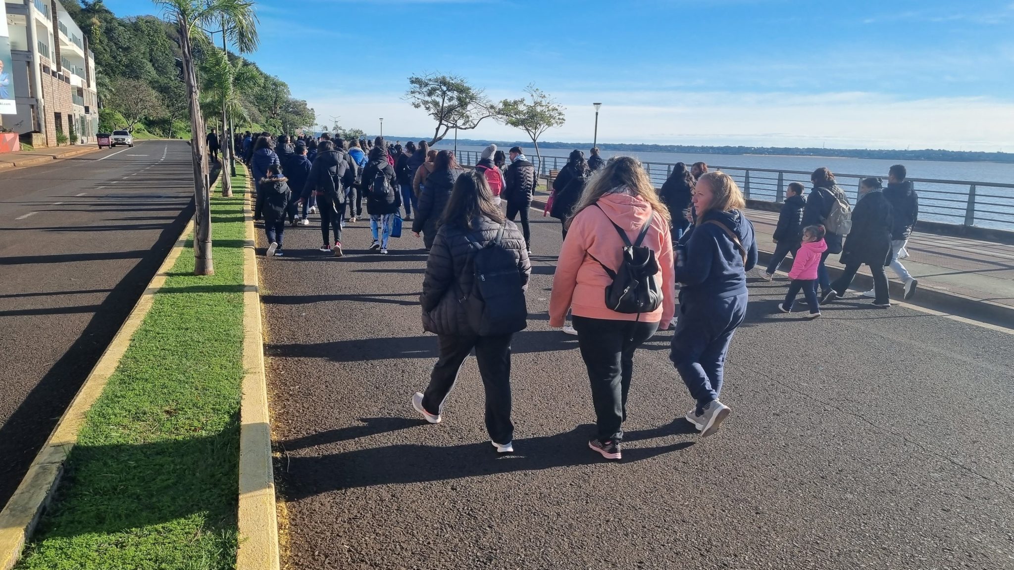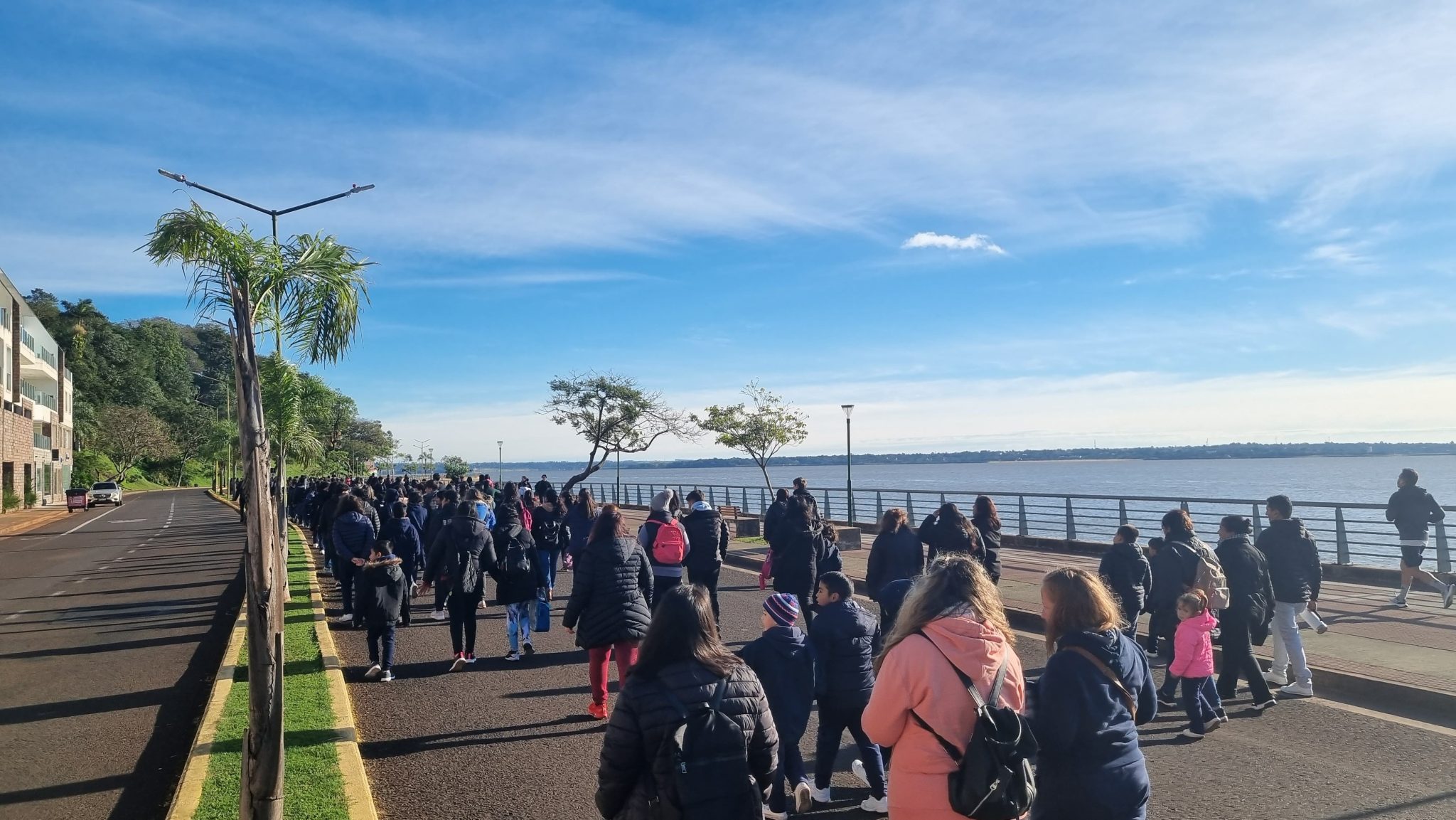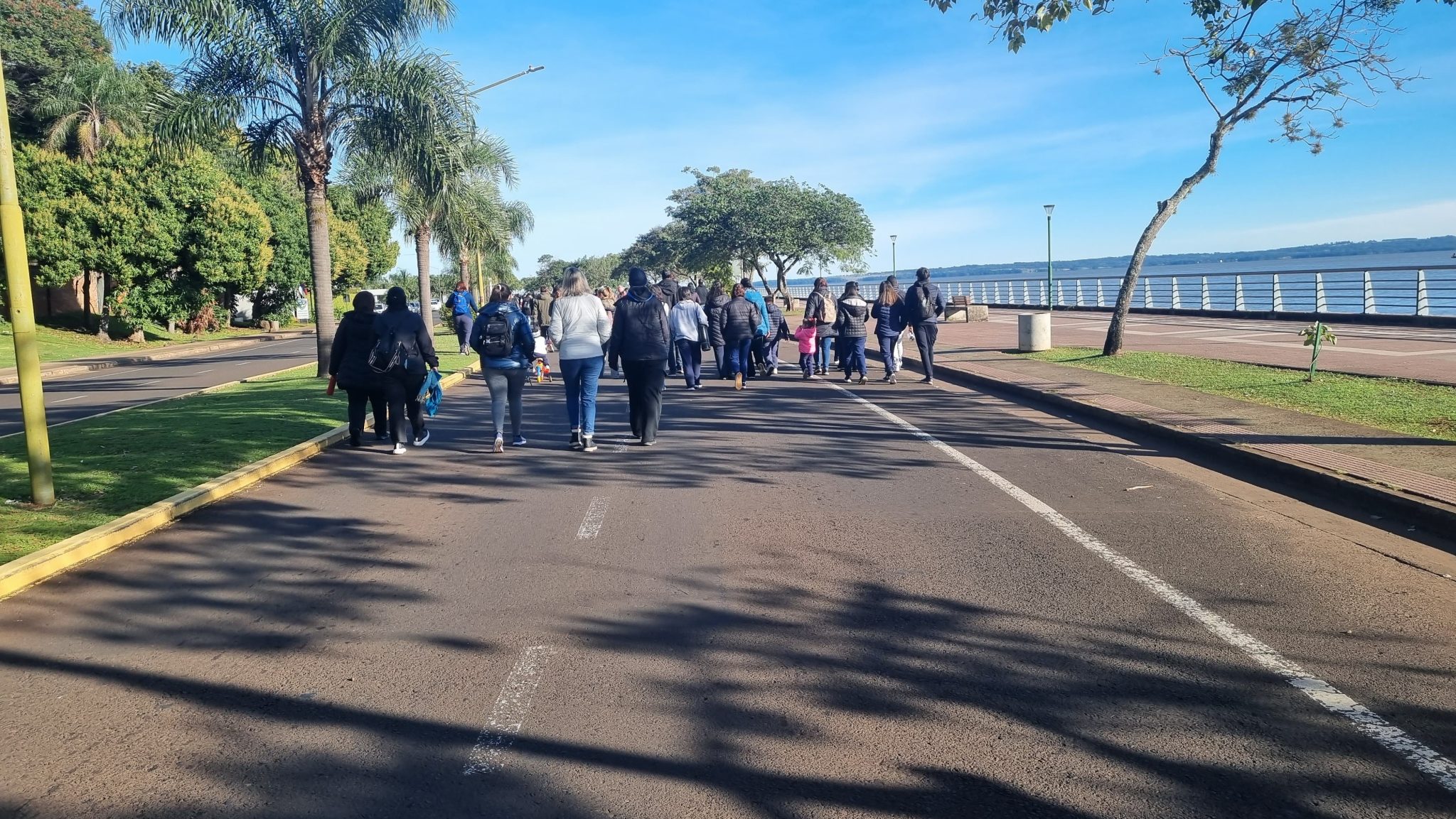 A pesar de la mañana fría, la participación fue firme, los pequeños y los grandes se juntaron entre todos, para realizar el recorrido de la caminata que abarcó toda la costanera, comenzando en la estatua del Papa y culminando en el anfiteatro de El Brete.