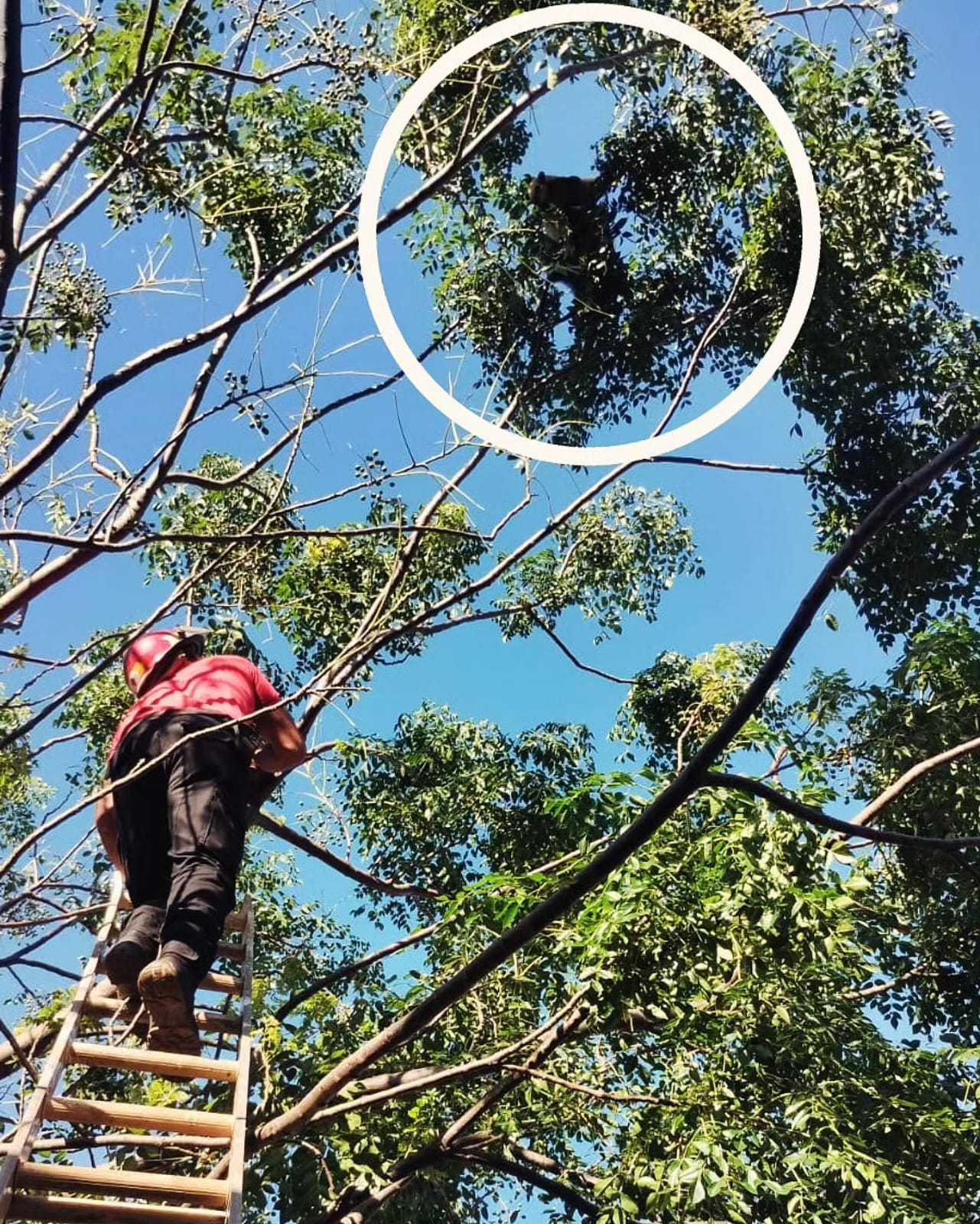 Efectivos de la División Bomberos de Jardín América lograron poner a salvo a un melero atrapado en un árbol, posiblemente luego de haber sido atacado por canes. Posteriormente, el animal fue trasladado a un área segura para su reintegración al hábitat natural.