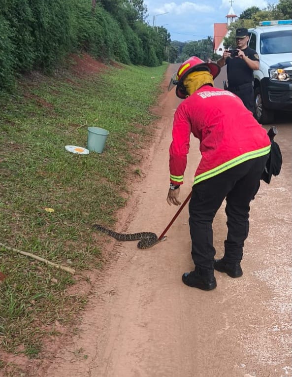 Ocurrió esta tarde en Apóstoles, donde personal de Bomberos de la Policía intervino en auxilio de una joven que, mientras realizaba actividad física, se topó con una serpiente de 1,10 metro de largo.