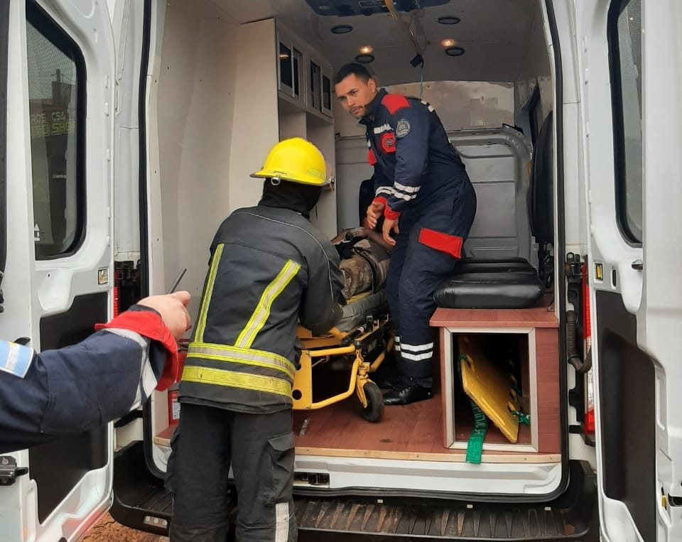 Un hombre de 44 años sufrió un accidente laboral y fue hospitalizado, mientras trabajaba con una grúa hidráulica que hizo contacto con un tendido eléctrico sobre la avenida Constitución de la localidad de San Vicente.