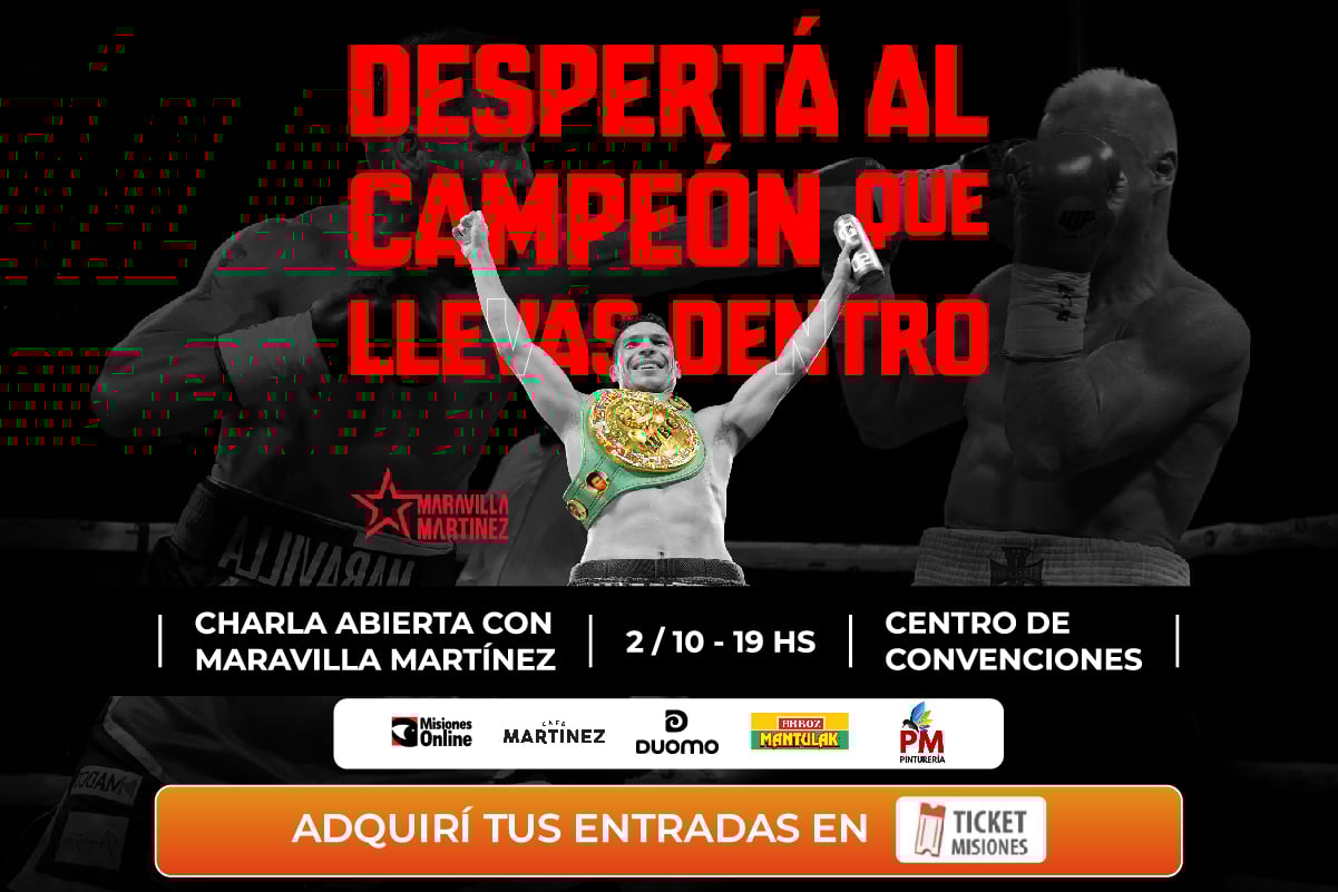 Bajo el lema «Despertá al campeón que llevás dentro», esta charla abierta se posiciona como una experiencia ideal para quienes busquen inspiracion a través de la historia del campeón mundial de boxeo argentino Maravilla Martinez. La propuesta incluye claves para el éxito y mentalidad ganadora.