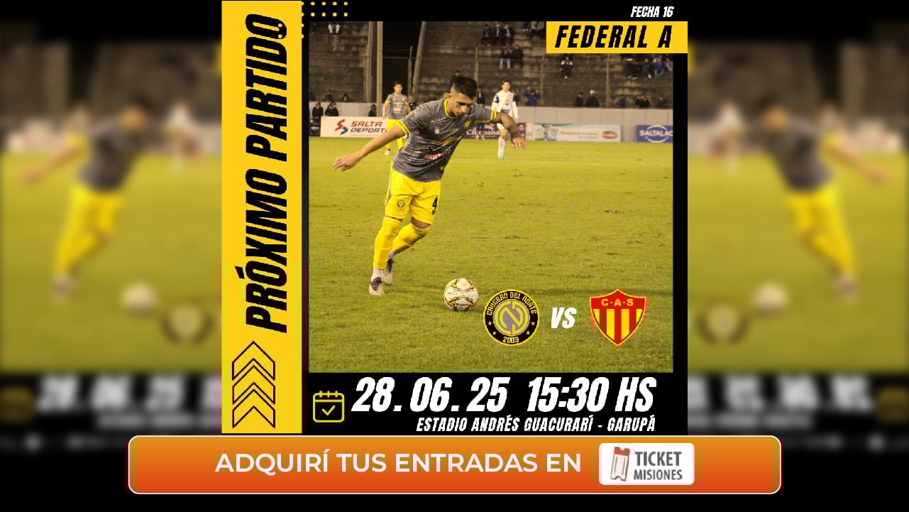 El “Colectivero” recibe a Club Atlético Sarmiento este sábado en Garupá por la fecha 16 del Torneo Federal A. Con tres partidos por delante antes de la Reválida, Crucero del Norte buscará recuperar confianza y sumar ante su gente. Las entradas ya están disponibles en TicketMisiones.com.