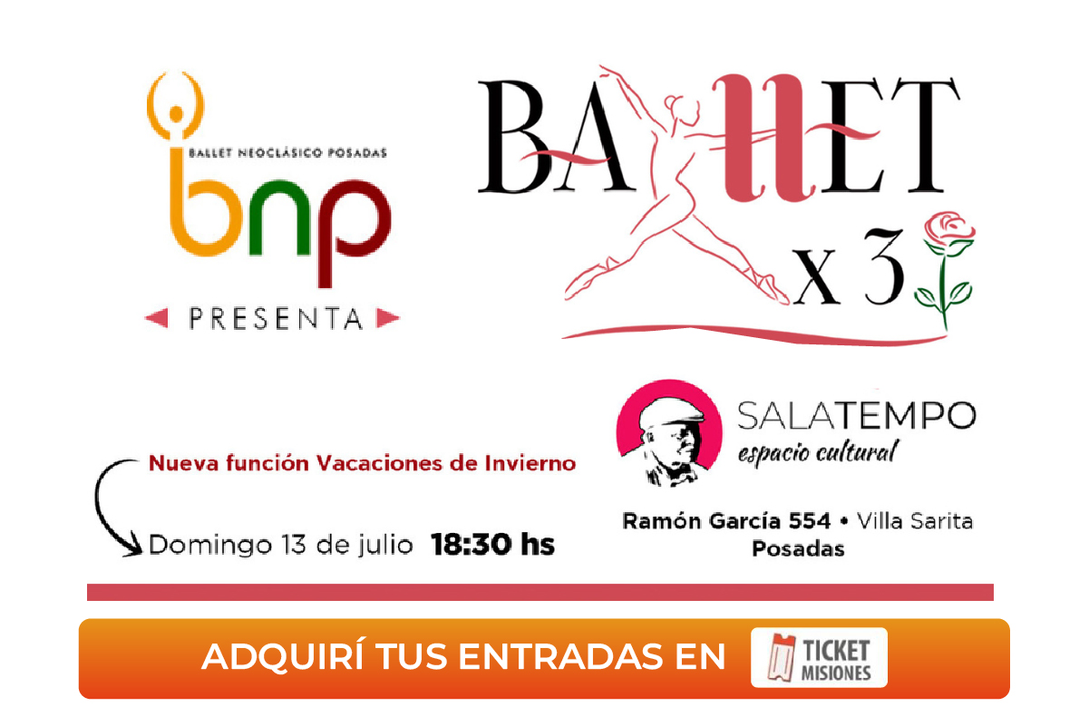 Tras el éxito de sus recientes funciones, el Ballet Neoclásico Posadas anuncia una nueva presentación de su aclamado espectáculo «Ballet x 3». Esta propuesta tendrá lugar el domingo 13 de julio a las 18:30hs en Sala Tempo, ubicada en Ramón García 554, Villa Sarita, marcando un inicio de lujo para las vacaciones de invierno en la ciudad.