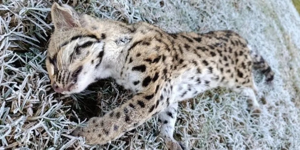 Un ejemplar de gato onza (ocelote) fue hallado sin vida l el kilómetro 1397 de la Ruta Nacional 12, altura del municipio de San Ignacio. El gato onza es una especie en peligro de extinción.