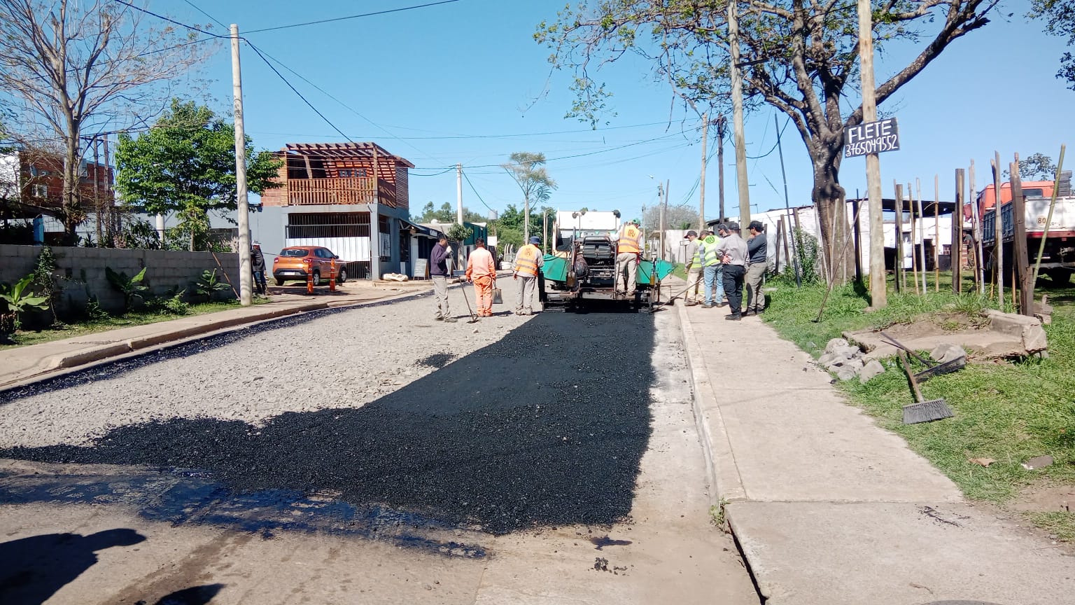 La Dirección Provincial de Vialidad (DPV) ejecuta tareas de asfaltado en el municipio de Garupá. Una de las calles intervenidas recibió una transformación integral previa, ya que se hizo un saneamiento completo antes de construir la base sobre la que se trabaja ahora en pavimentación.