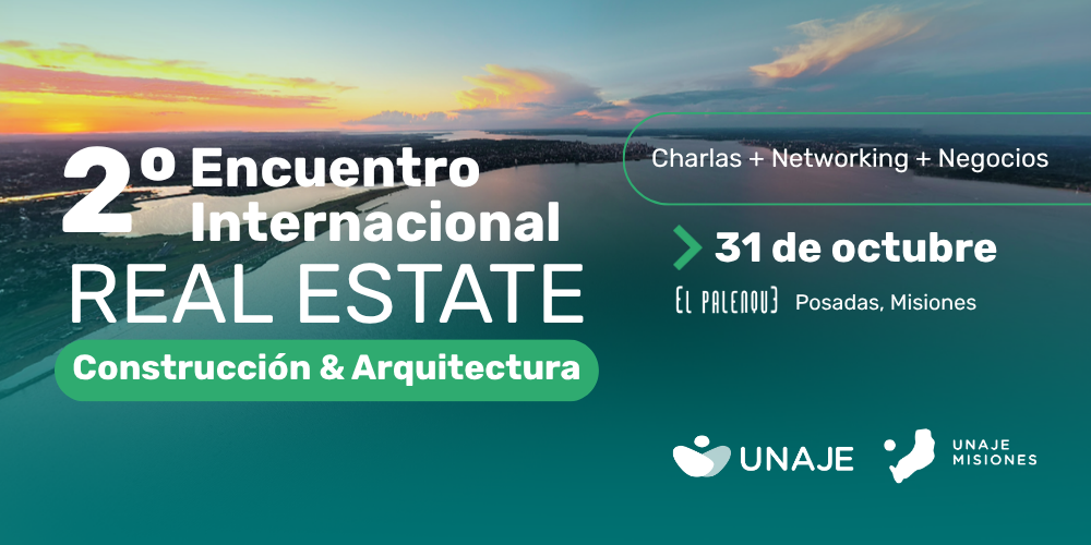 UNAJE, la Unión Argentina de Jóvenes Empresarios, organiza el 2º Encuentro Internacional de Real Estate, Construcción y Arquitectura, que se realizará el viernes 31 de octubre en El Palenque, en la ciudad de Posadas, Misiones.