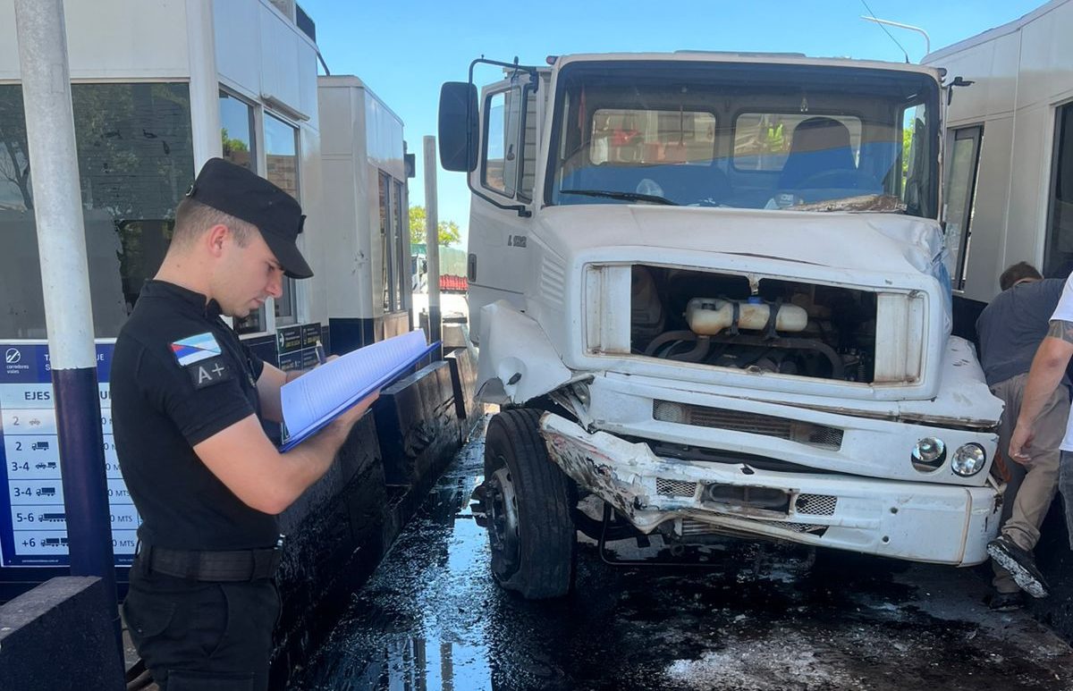 Un camión que transportaba almidón impactó contra la estructura del peaje Santa Ana
