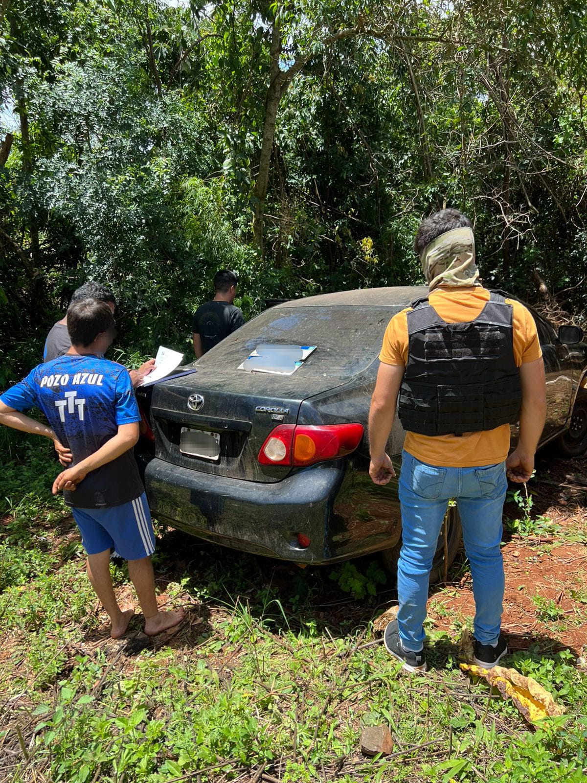 En un operativo desarrollado este mediodía en el Paraje Mondorí de Pozo Azul, efectivos de la División Investigaciones de Drogas Peligrosas, del Departamento de Inteligencia de Frontera y de la Comisaría local hallaron un Toyota Corolla robado en Brasil, el cual estaba meticulosamente oculto entre ramas y malezas dentro de un sendero de difícil acceso.