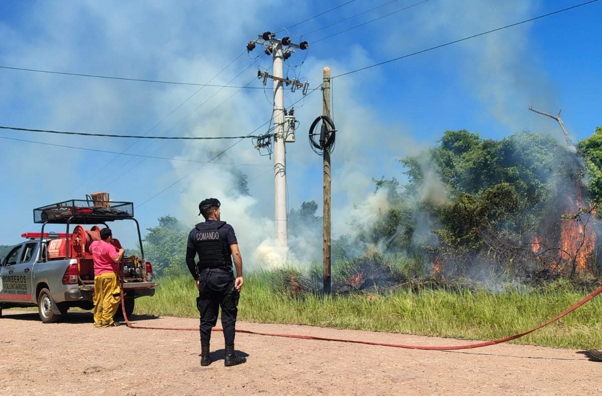 Bomberos sofocaron un incendio de malezas en el acceso a Teyú Cuaré