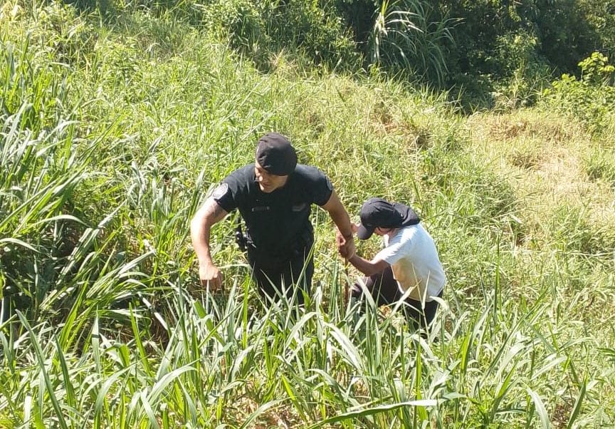 Un rápido accionar de efectivos policiales permitió rescatar con vida a un hombre de 39 años que había quedado atrapado entre la maleza en la ribera del río Iguazú, tras descompensarse por el intenso calor y sufrir una lesión en el tobillo, en inmediaciones de la costanera Eduardo Arrabal de Puerto Iguazú.