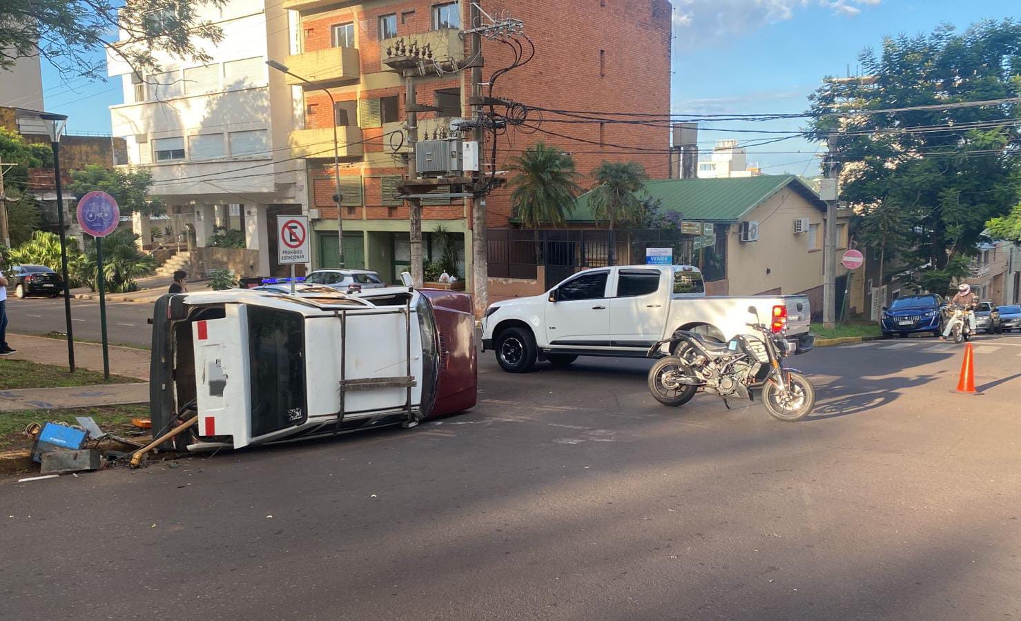 Posadas | Un auto volcó en el microcentro tras chocar contra una camioneta