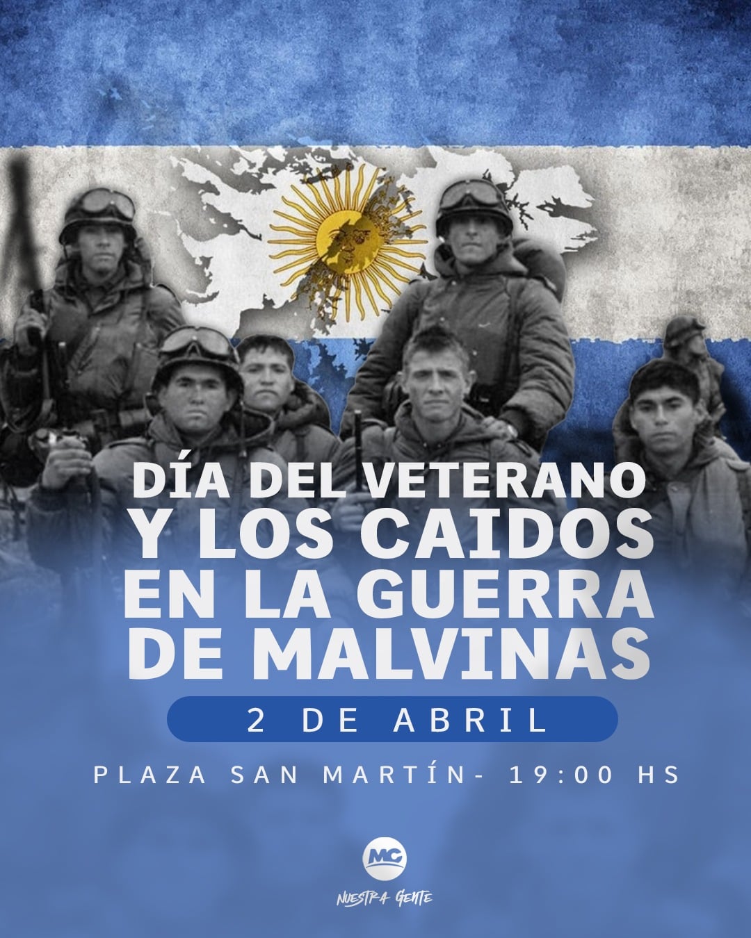 En el marco del Día del Veterano y de los Caídos en la Guerra de Malvinas, la Municipalidad de Montecarlo invita a toda la comunidad a participar del acto conmemorativo que se llevará a cabo el jueves 2 de abril a las 19:00 horas en la Plaza San Martín.