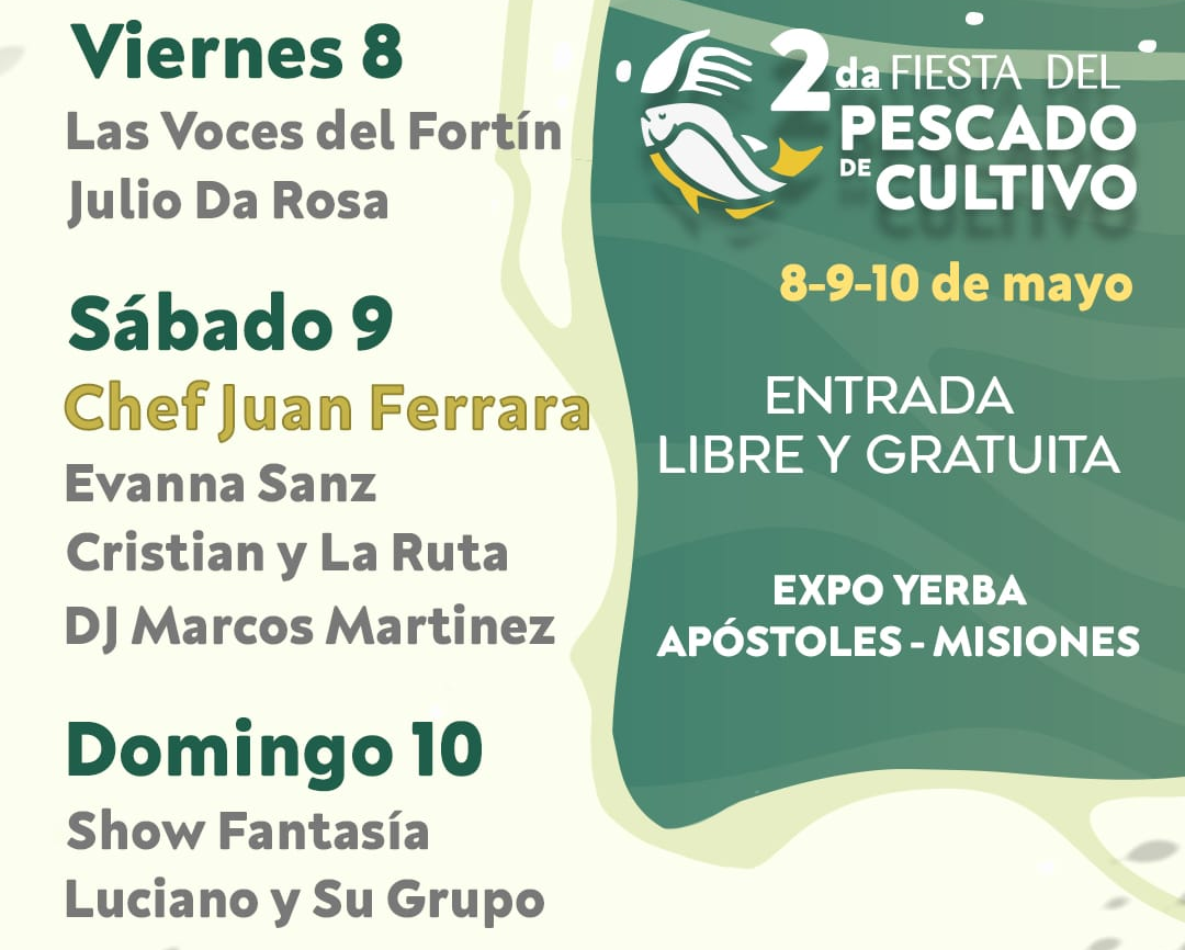 Se lanzó formalmente la 2da Edición de la Fiesta del Pescado de Cultivo en Apóstoles a desarrollarse los días 8, 9 y 10 de mayo en la Expo Yerba con acceso Libre y Gratuito, en la misma habrá exposiciones, charlas, capacitaciones, diversos Stands, Patios Gastronómicos y un Nutrido Festival Artístico.